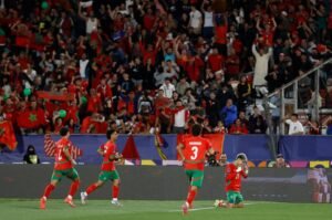 Morocco’s forward #21 Yassir Zabiri celebrates scoring his second goal during the 2025 FIFA U-20 World Cup final football match between Argentina and Morocco at the National Stadium in Santiago on October 19, 2025. (Photo by Raul BRAVO / AFP)